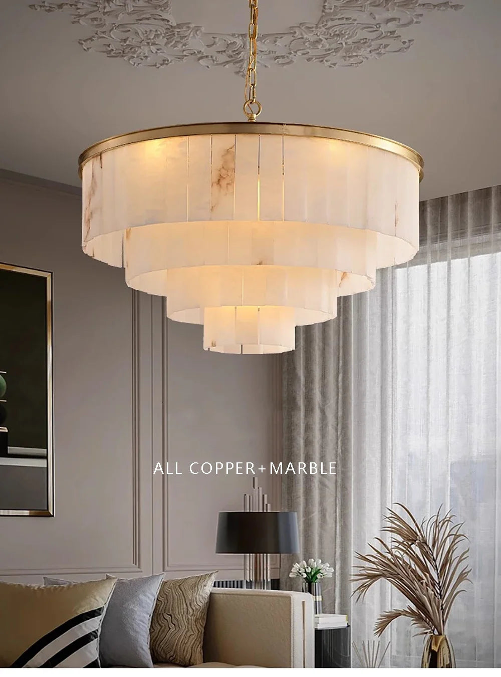 Transform your space with this exquisite Full Copper Resin Marble Chandelier. Combining premium copper construction with elegant resin marble accents, this luxurious fixture brings sophisticated elegance and timeless beauty to living rooms, dining rooms, bedrooms, and study areas.